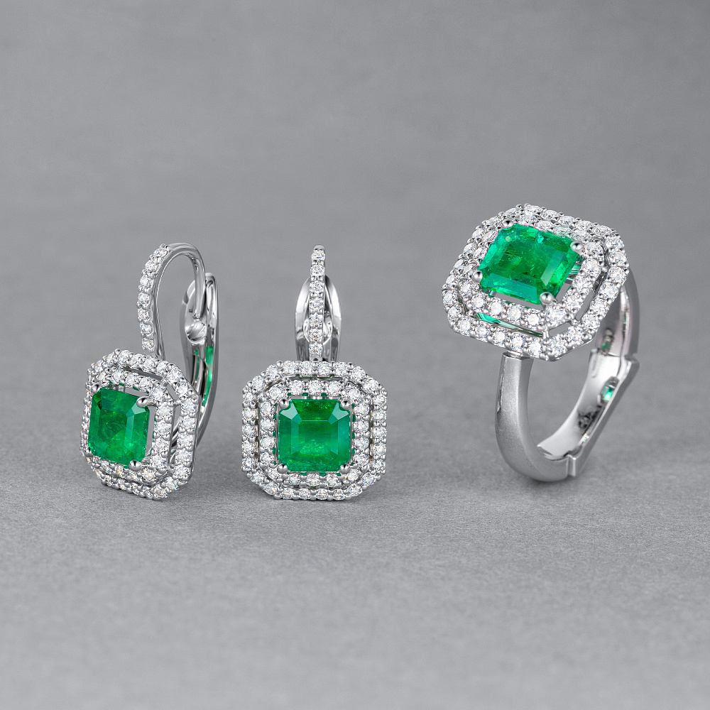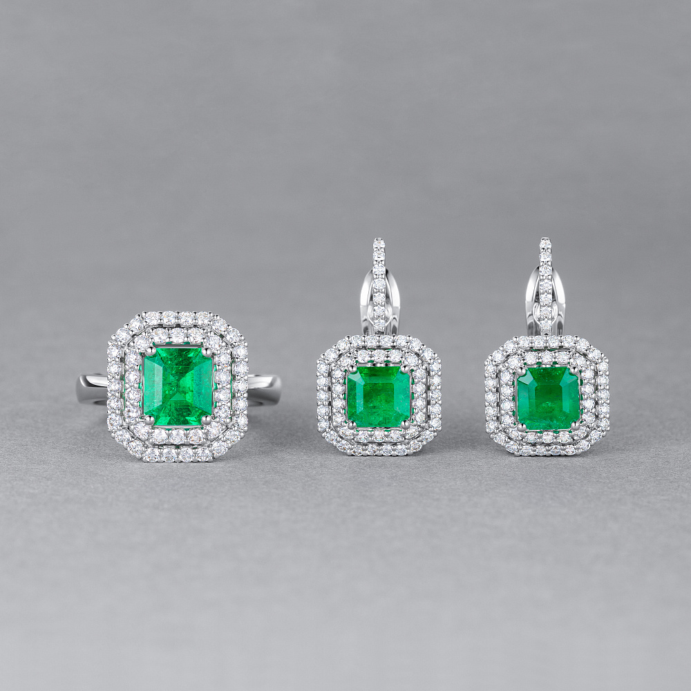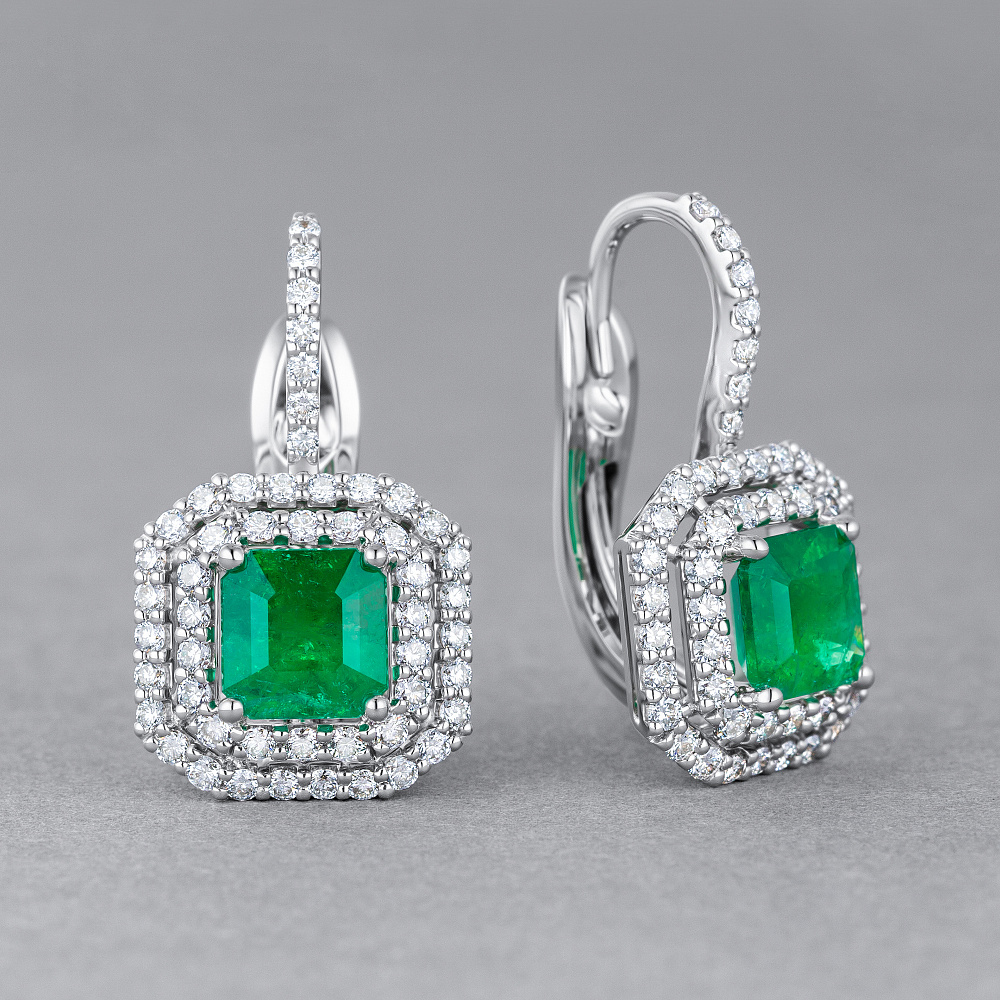 Серьги с изумрудами и бриллиантами Артикул: BE-537