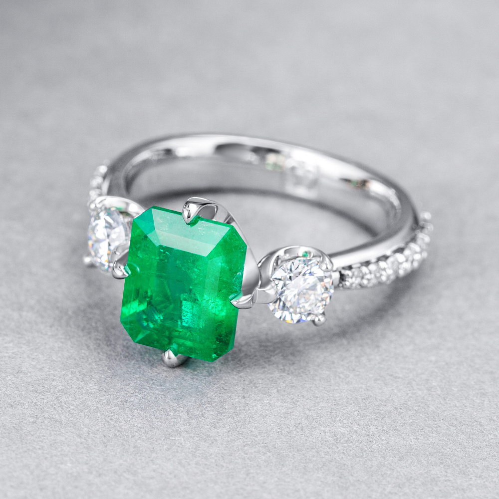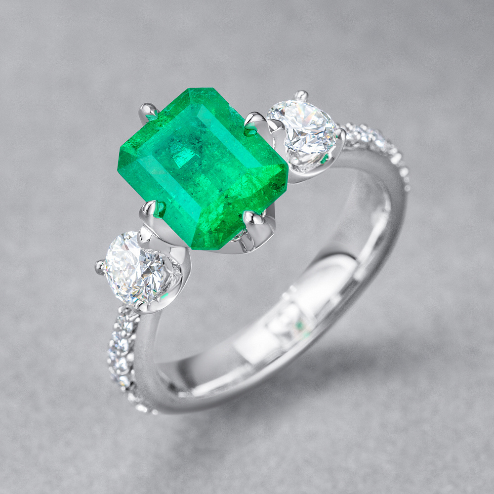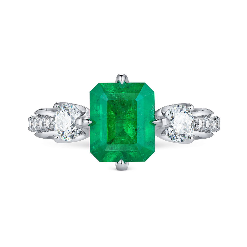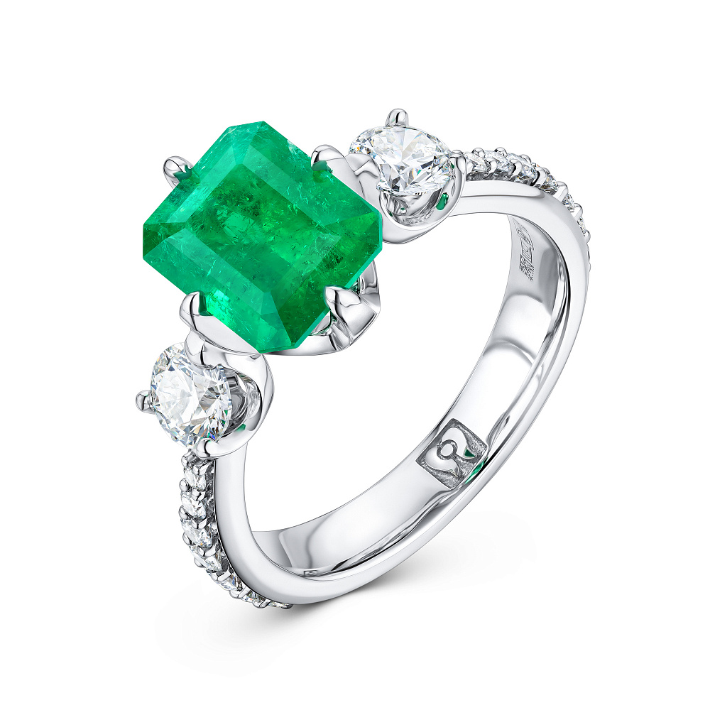 Кольцо с изумрудом и бриллиантами Артикул: BR-518