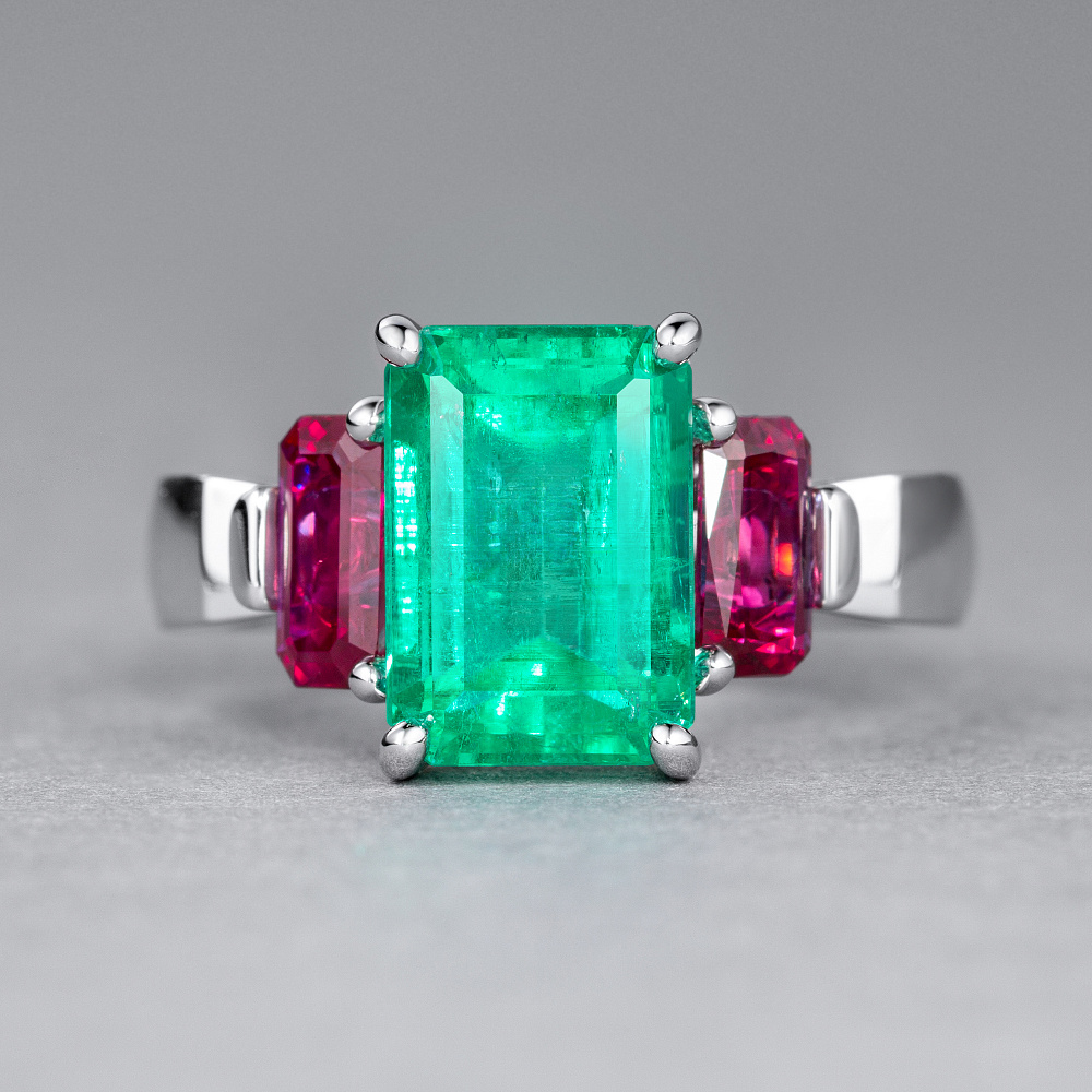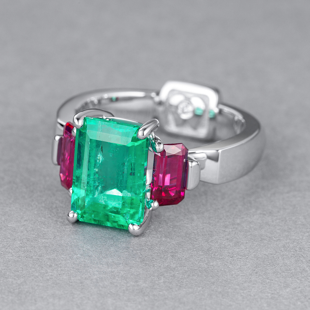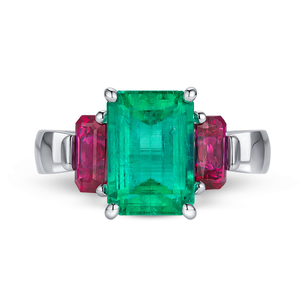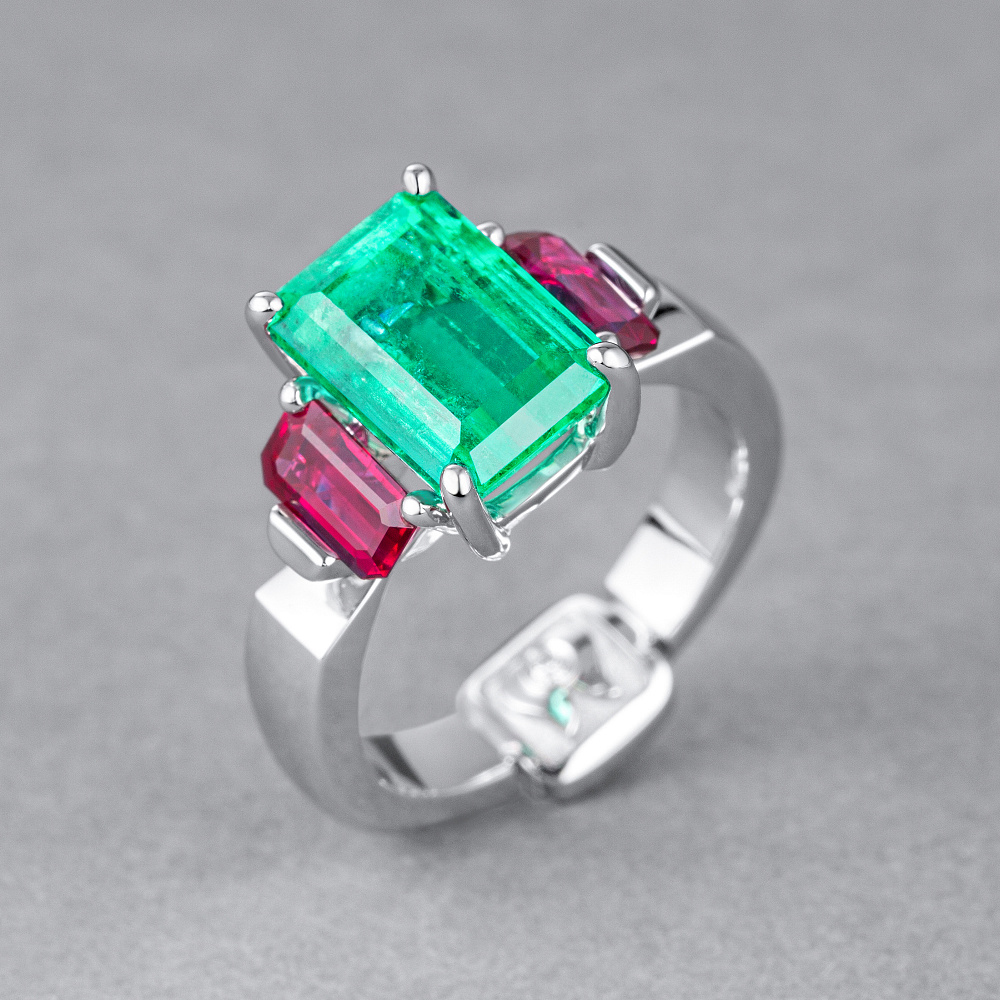Кольцо с изумрудом, рубинами и бриллиантом Артикул: BR-496