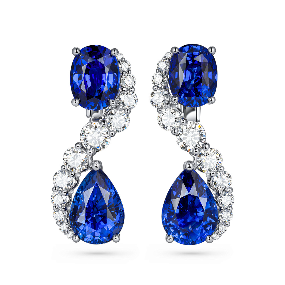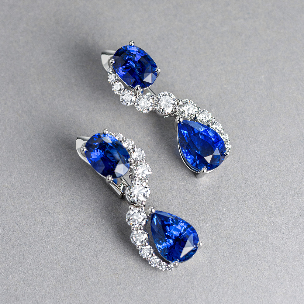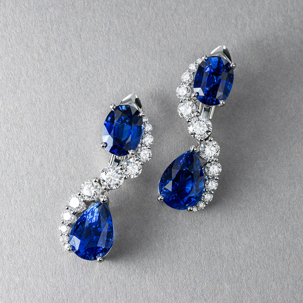 Серьги с синими сапфирами и бриллиантами Артикул: TBE-22