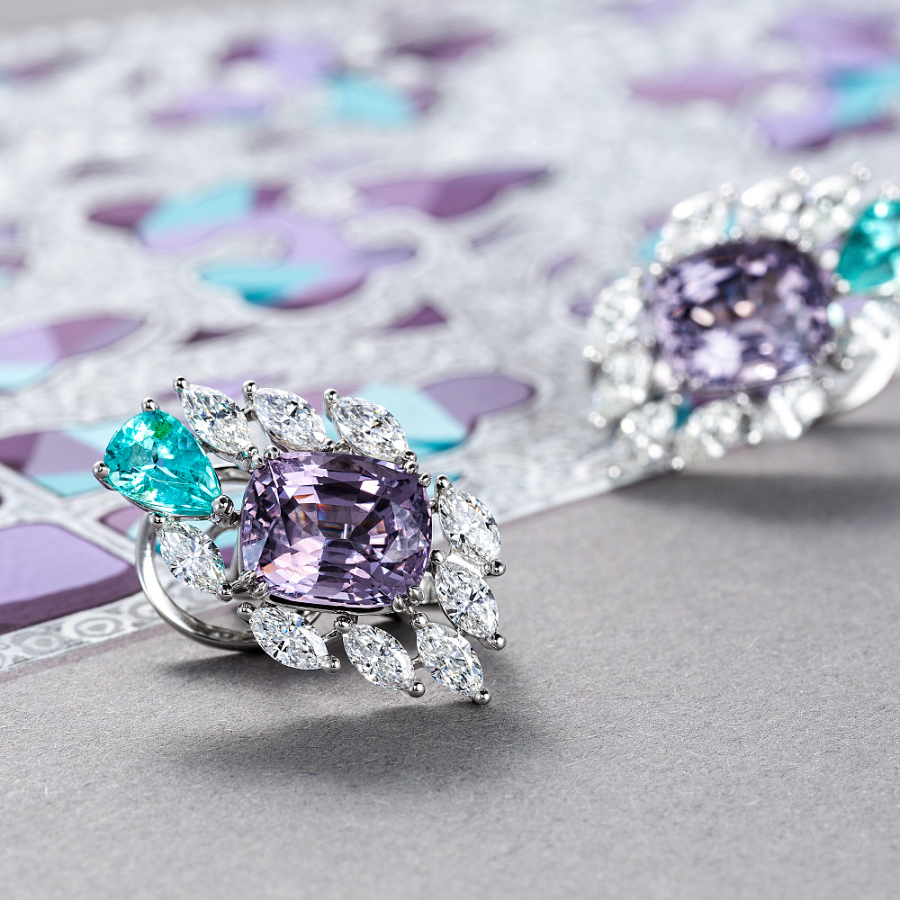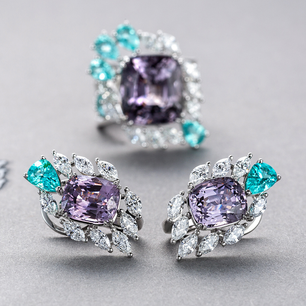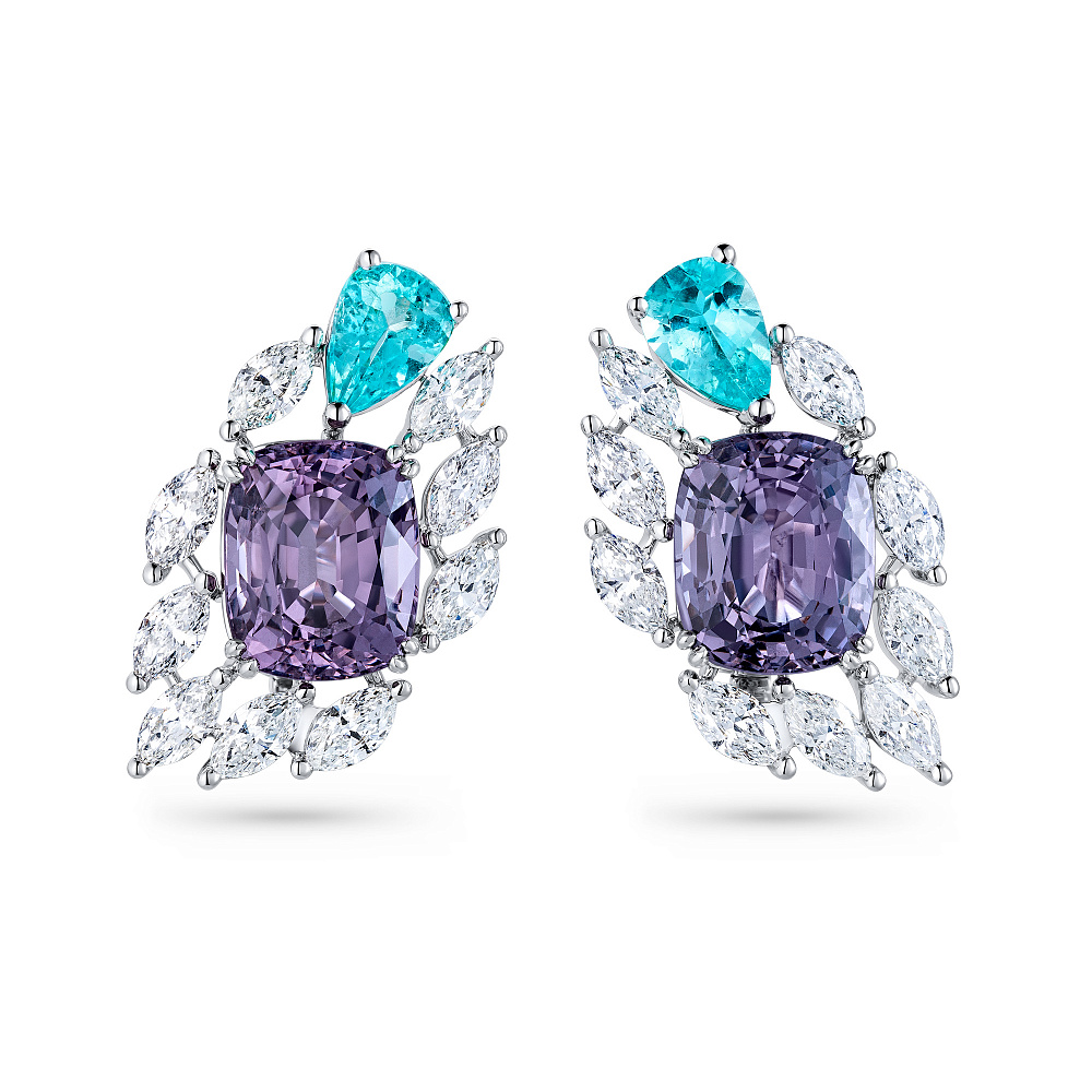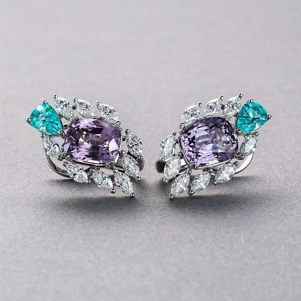 Серьги со шпинелями, турмалинами параиба и бриллиантами Артикул: BE-186
